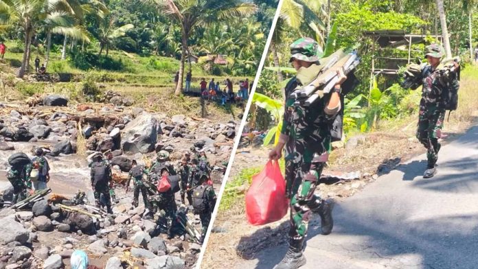 “Setelah mendapat informasi ada banjir bandang, kami langsung turun ke lokasi, mengevakuasi warga, serta membersihkan material yang menumpuk. Kehadiran kami adalah wujud kepedulian TNI terhadap masyarakat,” ungkapnya.