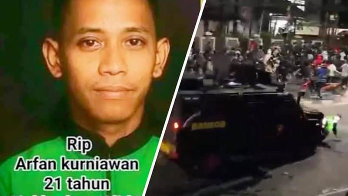 Mobil lapis baja itu lantas melindas seorang pengendara ojek online yang tengah berusaha lari dari kerumunan.