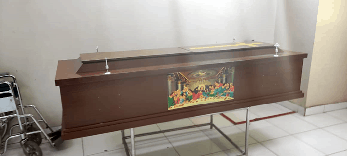 “Kalau kita terserah keluarga sa, mau pake peti yang mana,” ujar petus kamar mayat RS Siloam.